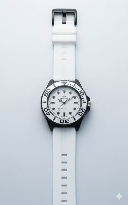 Alpha "Panda" Diver –Silicone Strap Sports Edition(Non Rotational Bezel)
